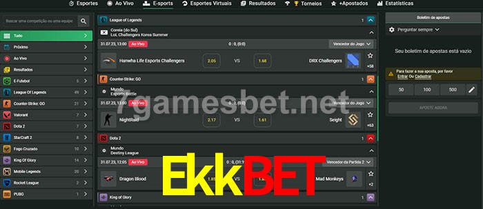O Ekkbet oferece uma grande seleção de opções de apostas em e-sports com probabilidades competitivas